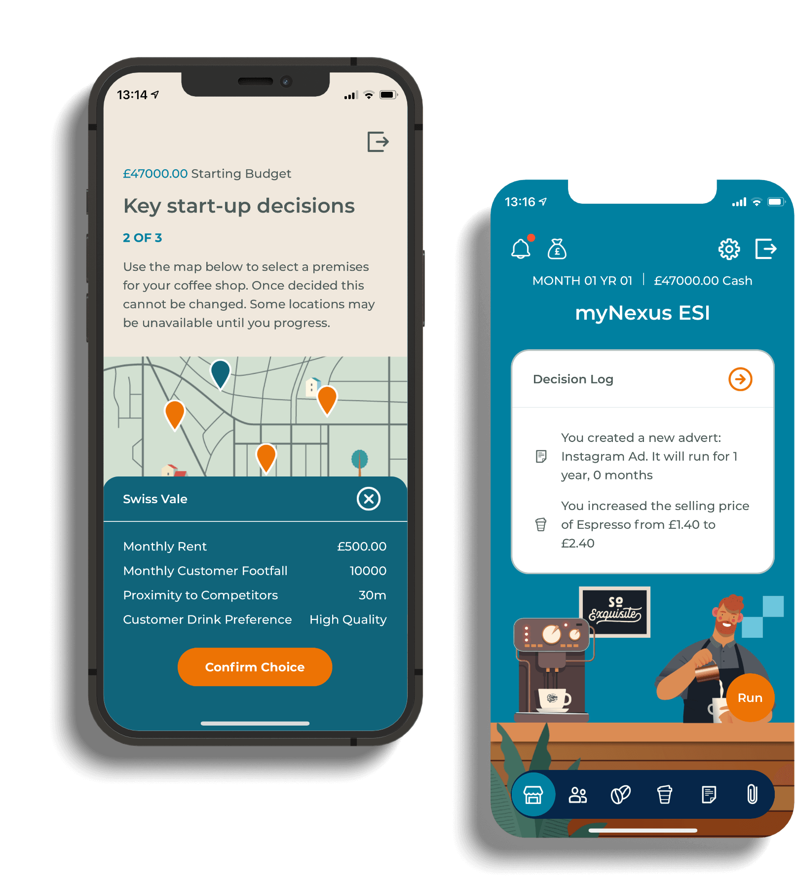 Designed to be played in short bursts when it suits you. Set-up your very own coffee start-up with £50,000 in the bank and try to last longer than five years. There are over one quadrillion different ways to play.